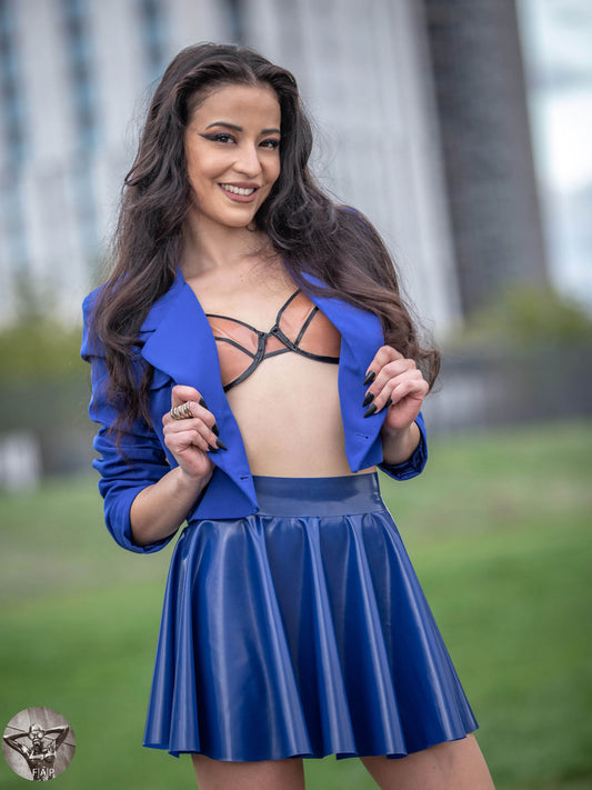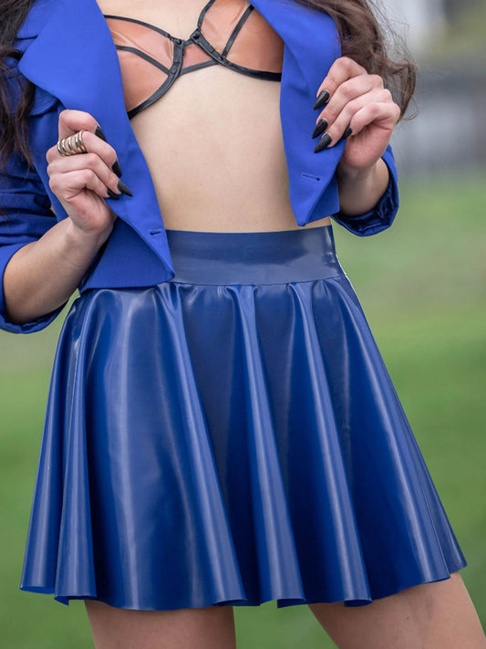 Das 0,4mm dünne Latex macht den Rock besonders leicht und schwungvoll, und durch den weit fallenden Schnitt