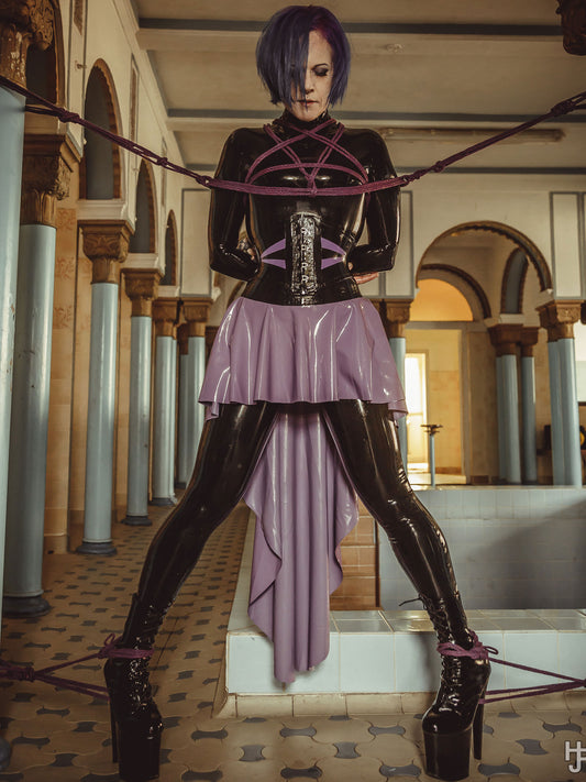Die Taillenreduktion wird allein durch unterschiedlich lange  Bänder in der Materialstärke 0,7 mm erreicht. Dies macht unser Korsett besonders bequem und auch über mehrere Stunden angenehm zu tragen.