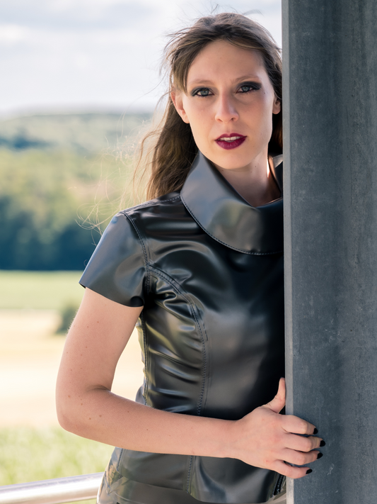 Unser stylisches Rollkragentop wird aus 0,5mm starkem Latex genäht und über einen seitlich versetzten, teilbaren Reißverschluss vorne geschlossen. Dieses Detail verleiht dem Oberteil einen charmanten asymmetrischen Look. Der Reißverschluss macht es möglich, den Rollkragen sehr variabel zu tragen: Von hochgeschlossen bis tief ausgeschnitten ist alles möglich!